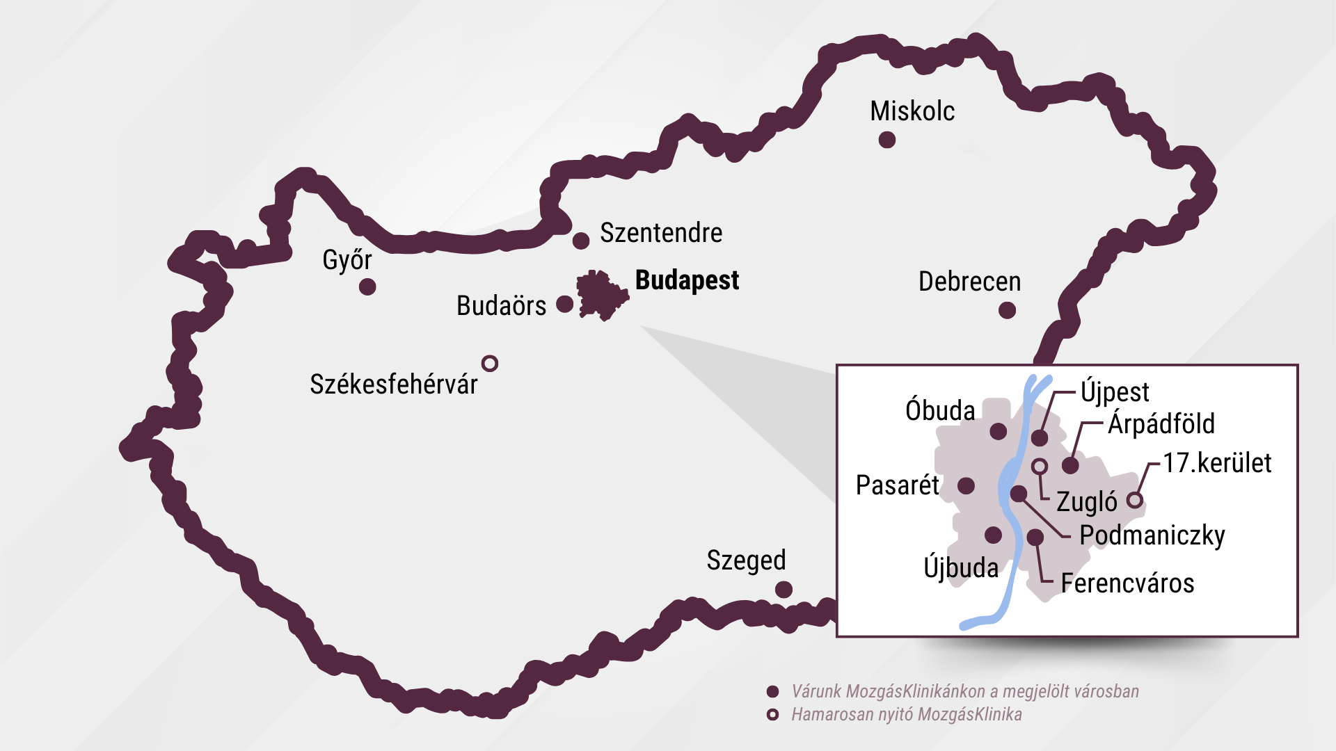A gyógyuláshoz ugyanis szükség van egy terápiás tervre, mely egyénre szabott és páciensorientált! A mozgásterápiában lépcsőzetes a javulás, a cél, a fájdalommentességen túl a hétköznapokba beépülő rendszeres testmozgás és ezáltal a jó kondíció elérése! A MozgásKlinika egyedi koncepciója a MozgásPiramis® alapján kínálunk terápiás programokat az egyes mozgásszervi betegségekre.